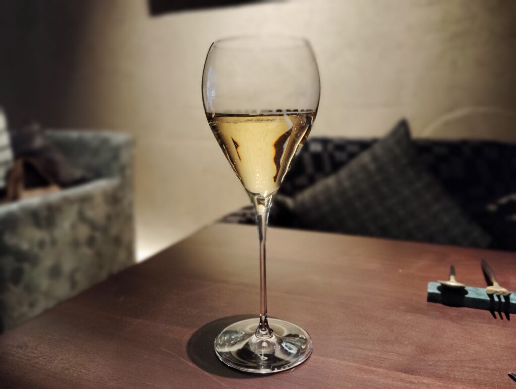 ドリンクはフリーフローで、メニュー記載のものとは別に、乾杯ドリンクとしてシャンパンまたはノンアルコールスパークリングワインをもらえる。