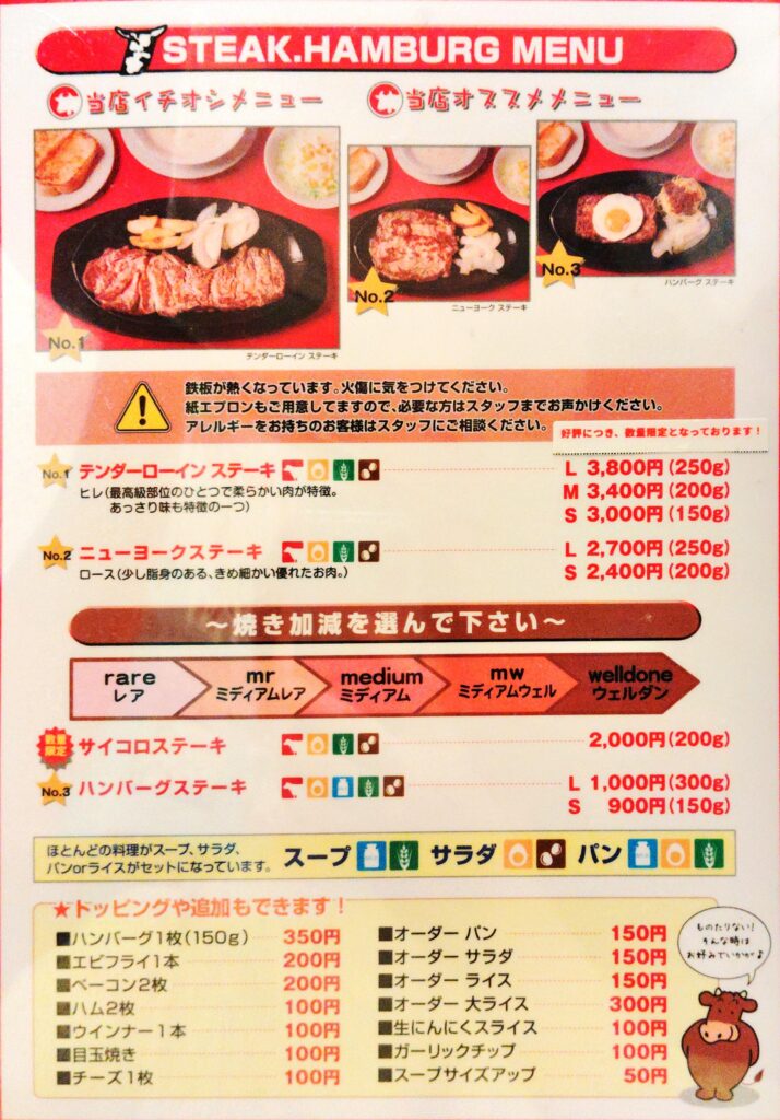 ステーキメニュー