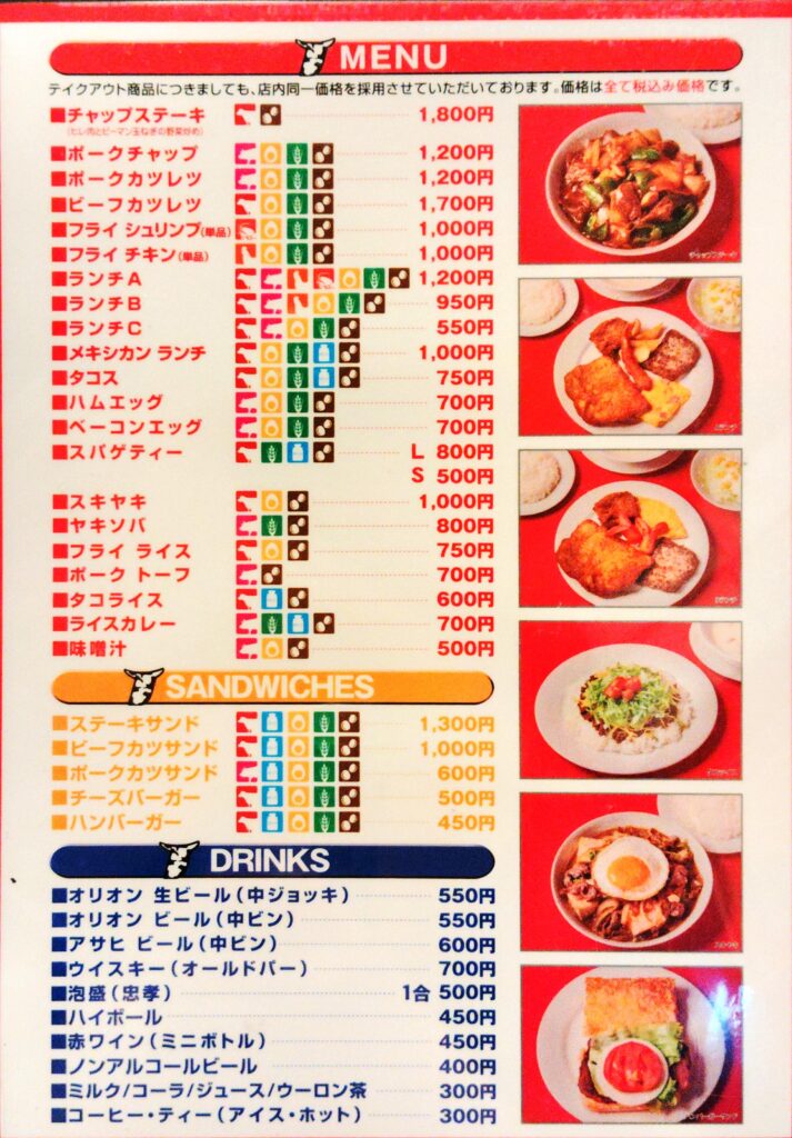 ステーキ以外のメニューも充実。カレーやタコライス、サンドイッチまである。ドリンクはオリオンビールや泡盛がある。