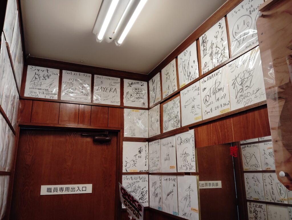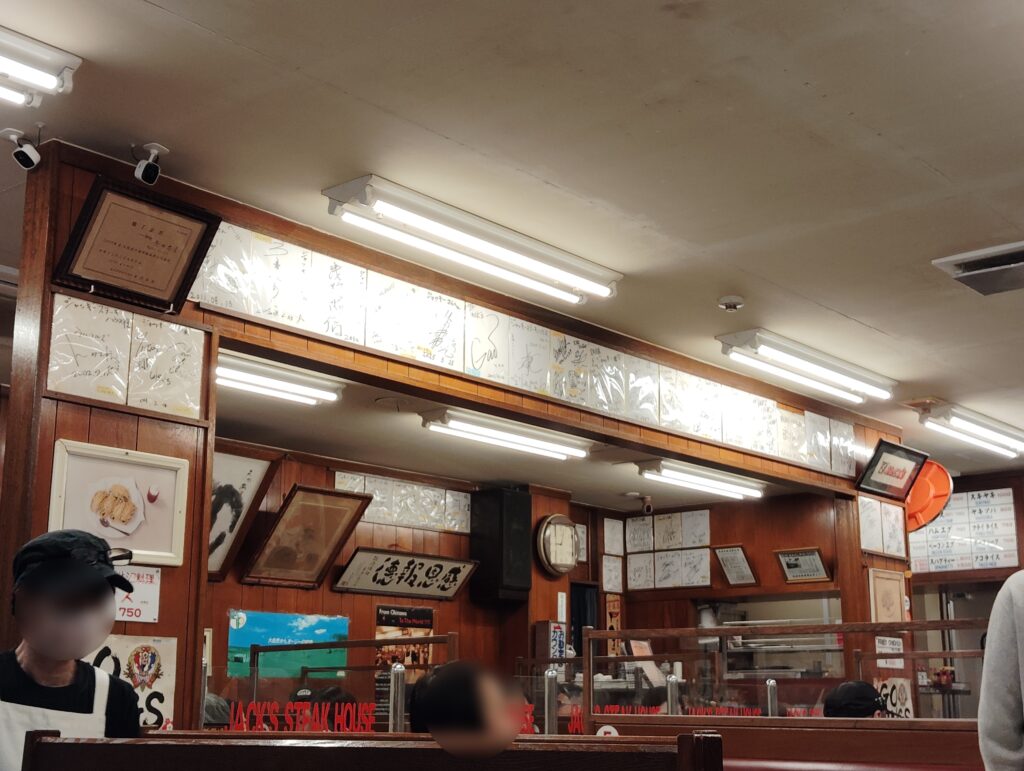 さすが有名店、サインがそこら中に飾られている。