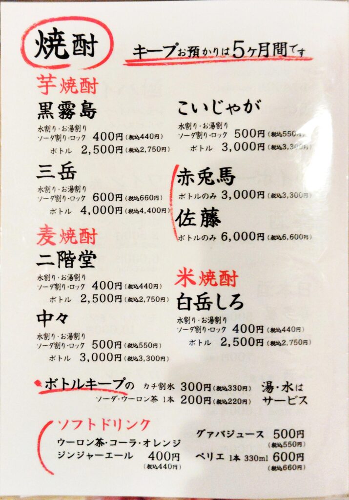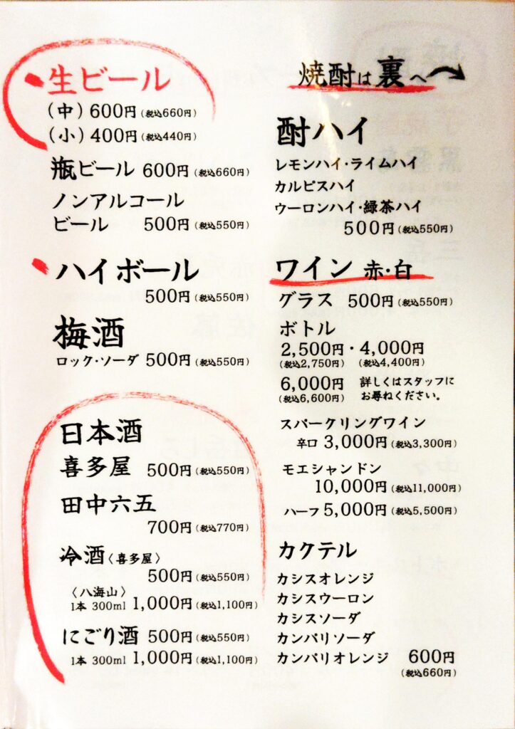 メニューは以下のとおり。注文は卓上のQRから行う。