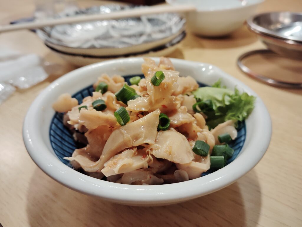 程よい酢の感じと、弾力がありながら歯切れは良いもつ、お酒も進む。