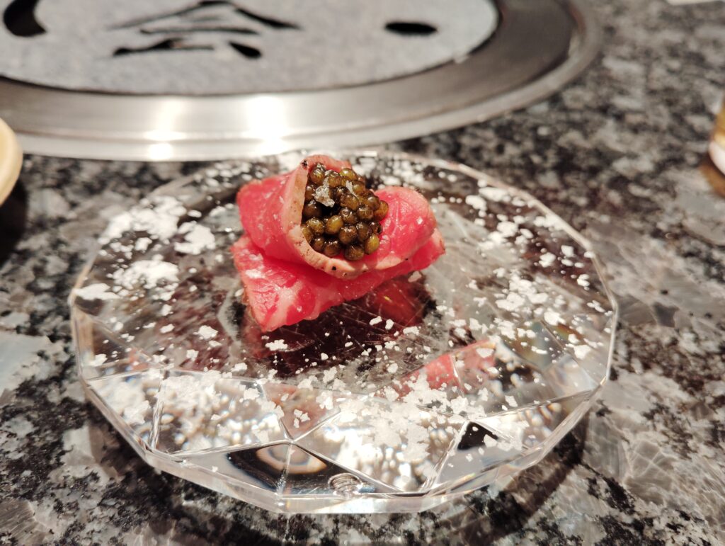 2枚あり、片方はキャビア乗せという豪華さ。シンプルに塩で食べることで、お肉の旨味をダイレクトに感じられる。