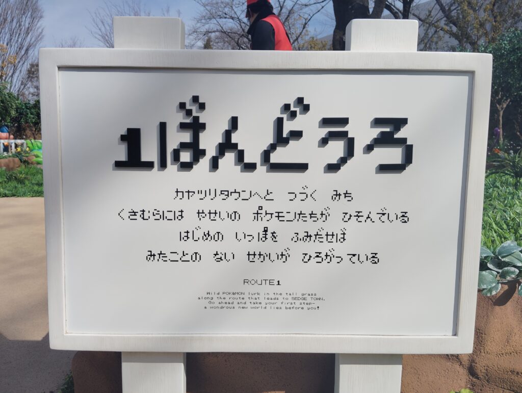 再現性の高さはポケモンだけではない。「1ばんどうろ」の奥行き感で初代ポケモンを思い出す人は多いだろう。いたるところに配置された看板のフォントも懐かしい。また、それぞれのポケモンの近くには、風景に溶け込むようにスピーカーが置かれていて、ポケモンの鳴き声も聞くことができる。まさに自分がポケモンの世界に入り込んだかのような圧倒的な没入感。