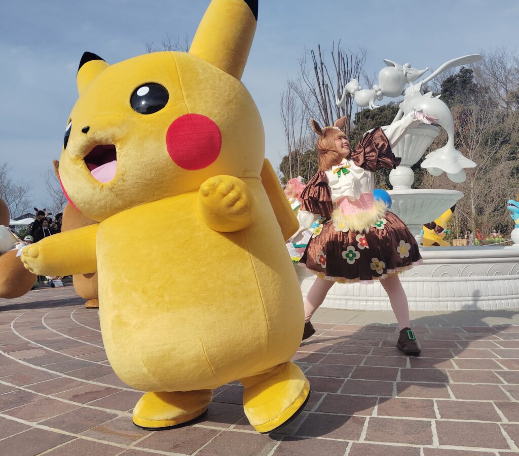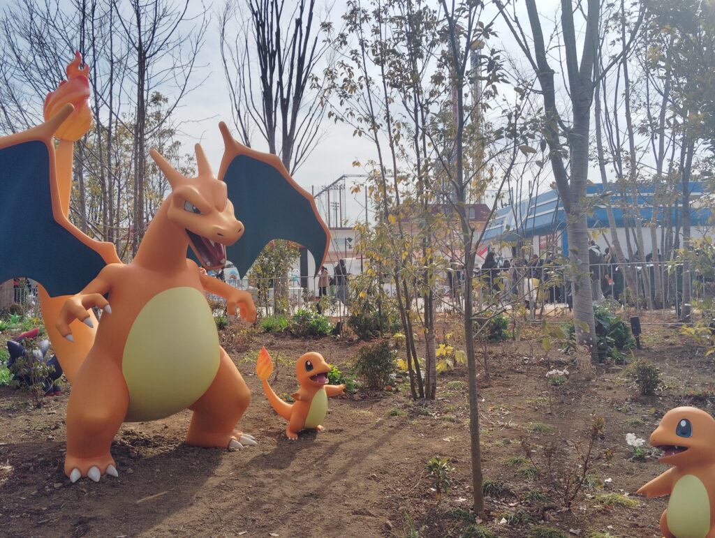 よみうりランドのゲートをくぐり、ポケパークの入り口が見えた瞬間、思わず足が止まった。そこには、幼い頃にゲームボーイの画面越しに見ていた「あのポケモンたち」が、出迎えてくれたからである。