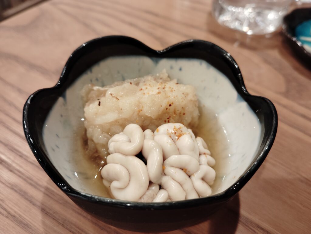 北海道産の真鱈を揚げ、白子と共に提供。味が染みていておいしい。