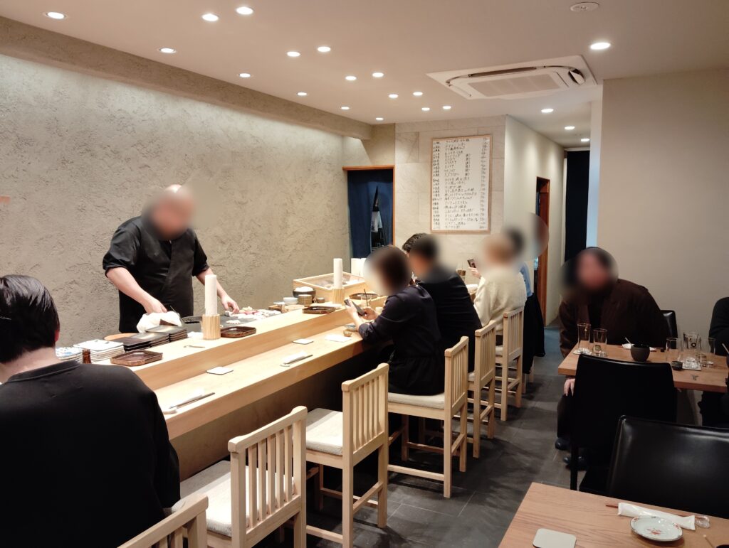 店内は明るく、モダンで清潔感ある雰囲気。高級寿司店のような厳格さはなく、誰でもカジュアルに楽しめる空間作りを意識していることがうかがえる。