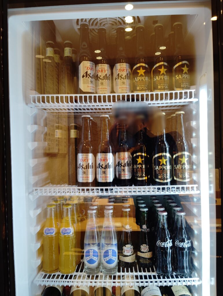 飲み物はお店の奥にある冷蔵庫の上から3段目まで(ビールなど)と、入口付近にある冷蔵庫からセルフで取る方式。