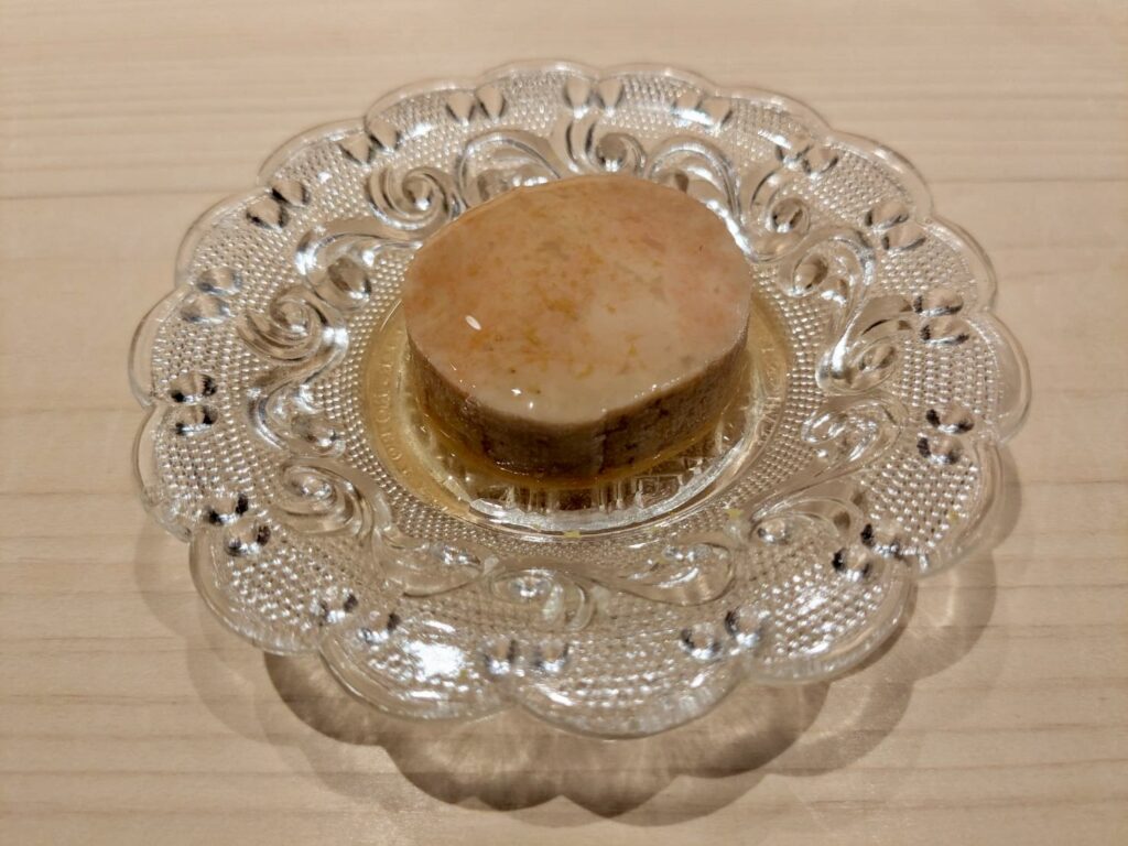 余市のあん肝。ゆずがかかっている。お好みでわさびを付けて食べる。