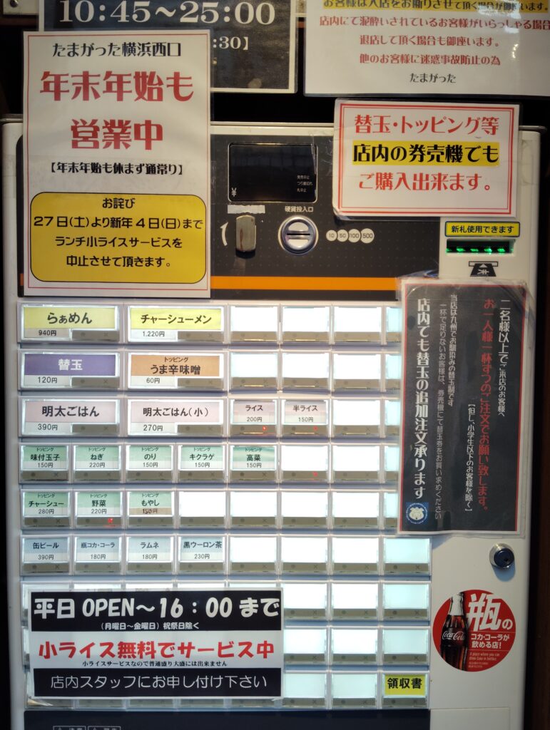 横浜市西区にあるラーメン屋「たまがった 横浜西口店」に行ってきた。