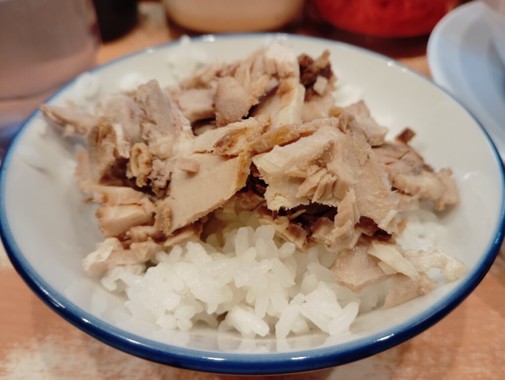 16時まではなんと小ライスが無料でついてくる。しかもカウンター上にチャーシューの切れ端が山盛りにされており、自由に取っていいという大盤振る舞いなサービス付き。ライスの上にチャーシューを乗せ、さらにそこにスープをかけると激ウマ。ぜひお試しあれ。